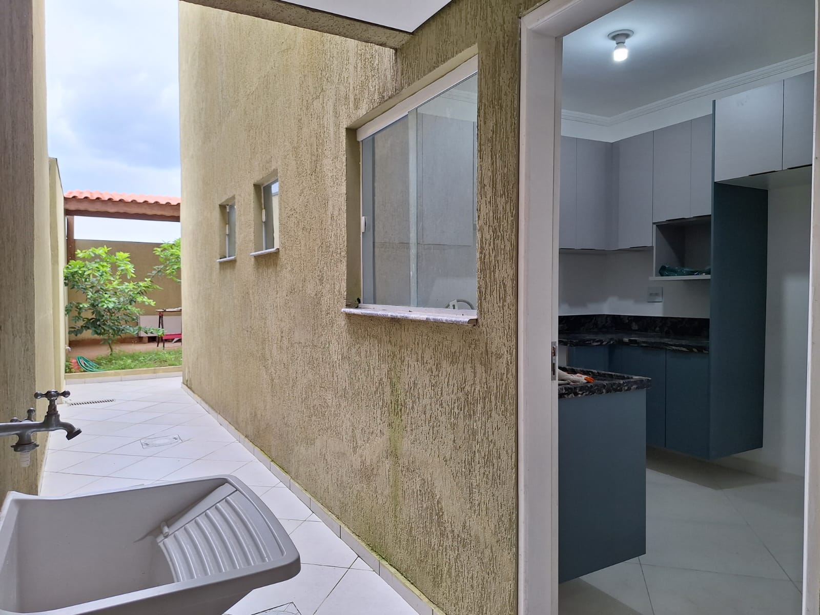 3 dormitórios com suíte, quintal, área de serviço e 2 vagas cobertas.